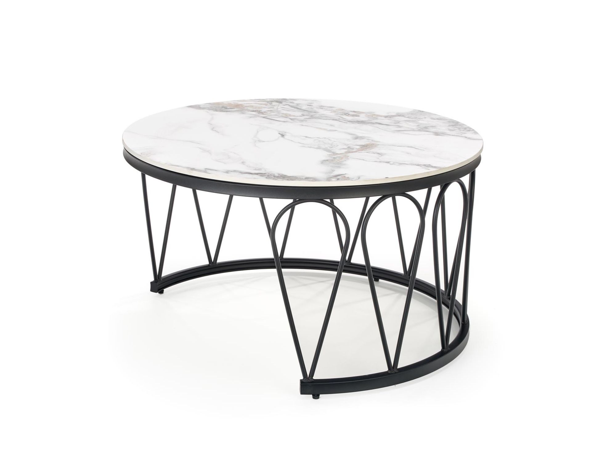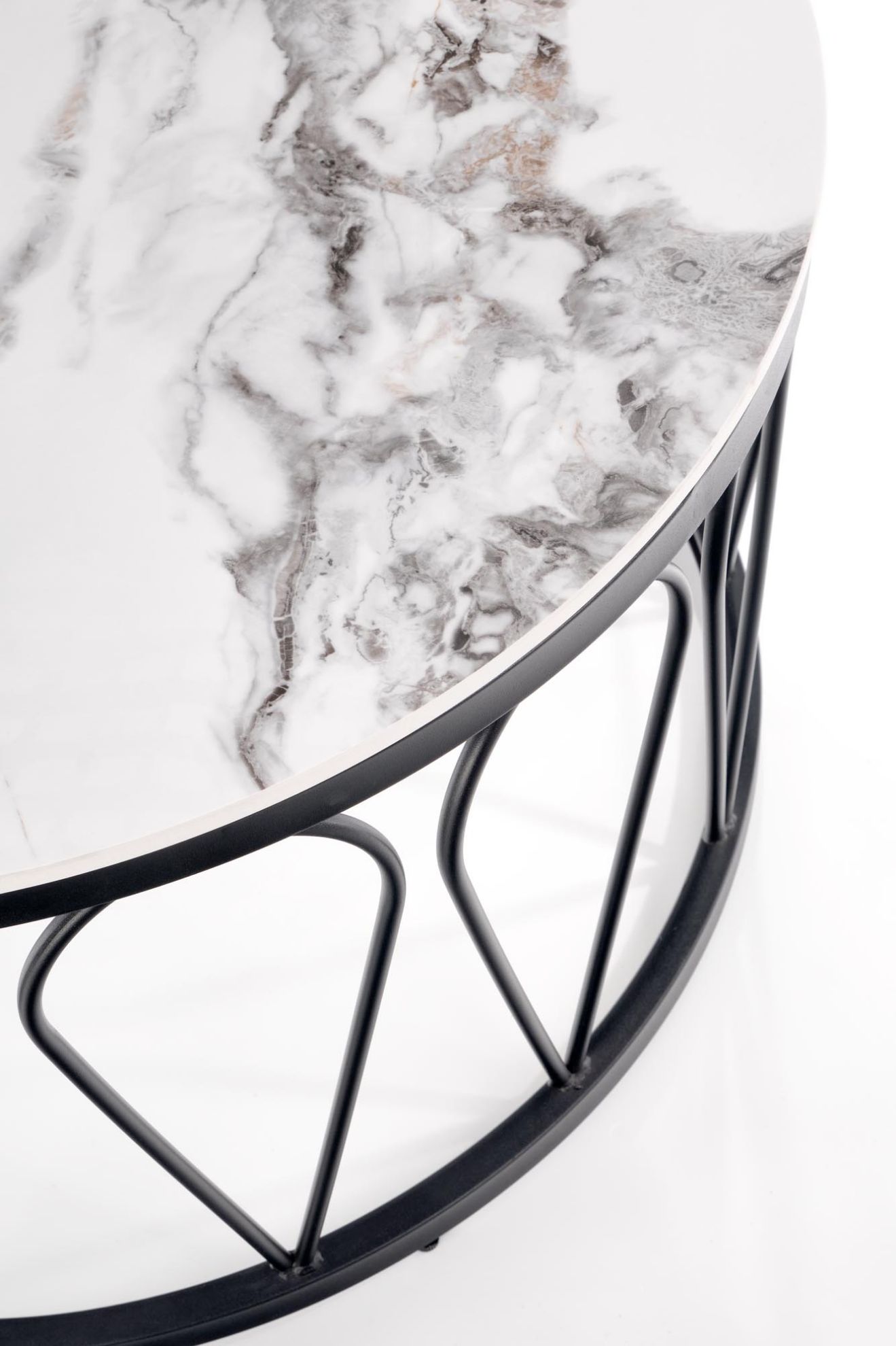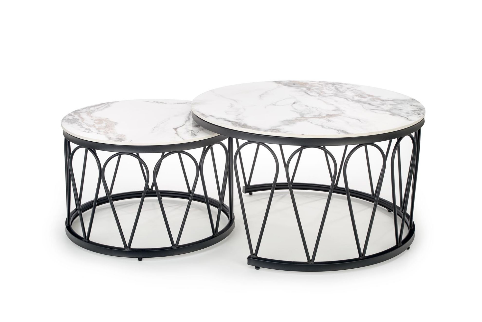Blaty o wymiarach fi60/40 cm oraz fi80/47 cm, zostały wykonane z trwałego i eleganckiego materiału - spieku. Ich powierzchnia w kolorze białego marmuru nadaje zestawowi subtelnego, ale zarazem efektownego wyglądu, który doskonale komponuje się z różnymi stylami wnętrz.