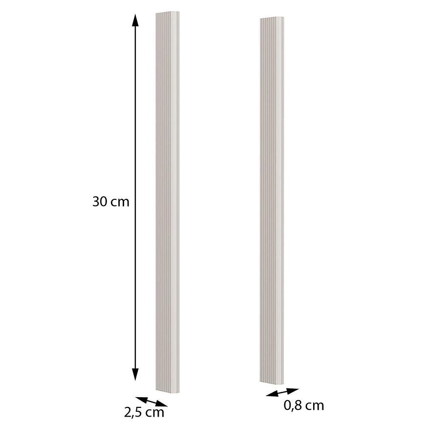 Każdy uchwyt ma 1,6 cm szerokości, 30 cm wysokości i 2,5 cm głębokości, co gwarantuje wygodny uchwyt i estetyczne wykończenie frontów szaf. Wykonane z płyty wiórowej laminowanej, łączą lekkość z trwałością, a waga 0,2 kg ułatwia montaż.
