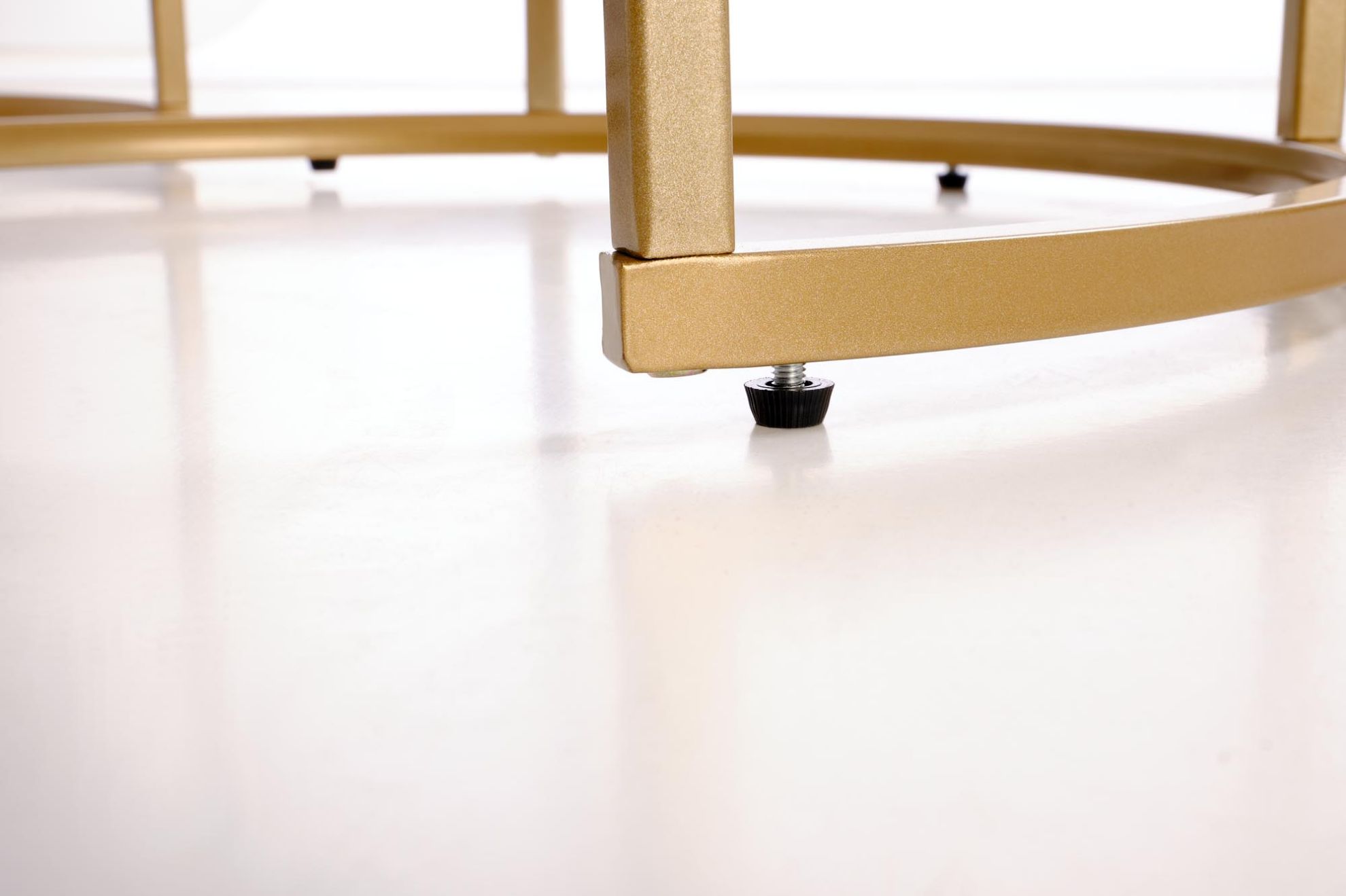 Każda ława z zestawu Lunio prezentuje się niezwykle efektownie dzięki połączeniu białego marmuru z elementami w złotym wykończeniu. Taki kontrast dodaje wnętrzu luksusowego charakteru, nie przytłaczając przestrzeni. Delikatne linie i subtelne proporcje sprawiają, że ławy doskonale wpisują się w nowoczesne aranżacje, jednocześnie umożliwiając różnorodne ustawienia – osobno lub jako zestaw do centralnej części salonu.