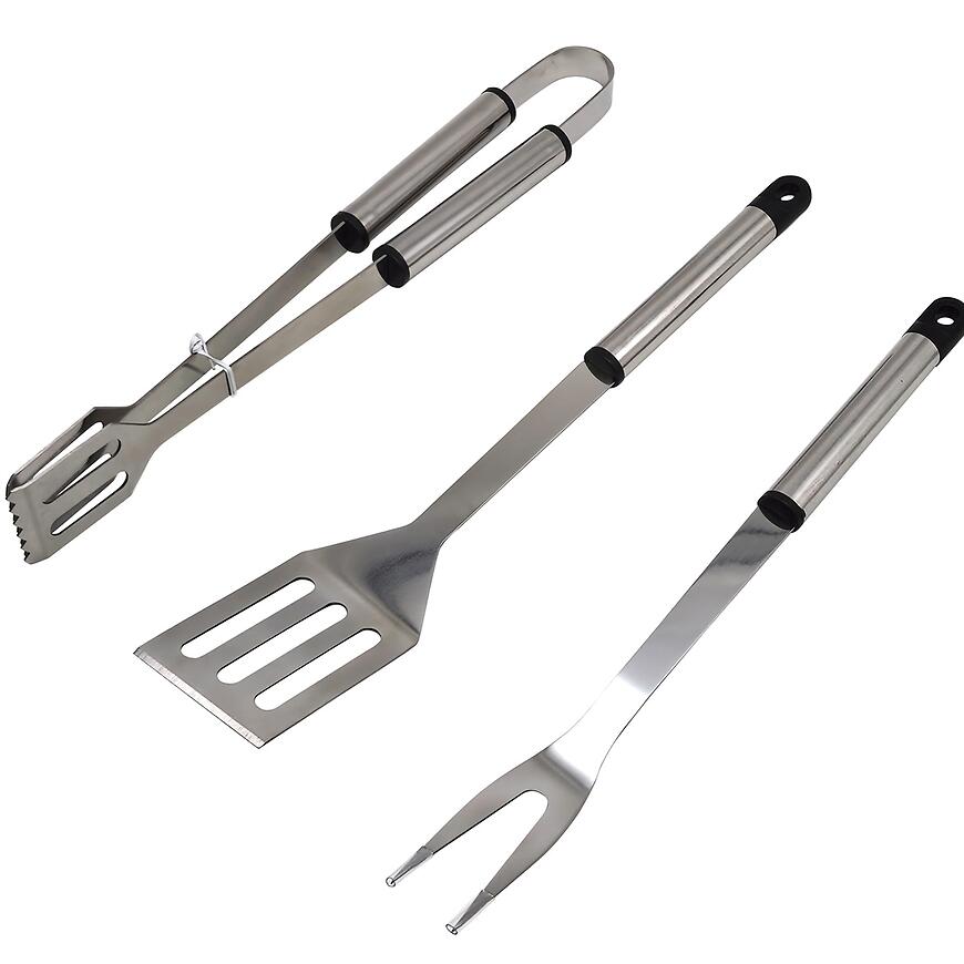 Praktyczny zestaw 3 narzędzi do grilla zawiera szczypce, widelec i łopatkę, które ułatwiają przygotowanie mięsa, warzyw i innych potraw. Zapewnia wygodę oraz bezpieczeństwo podczas grillowania.