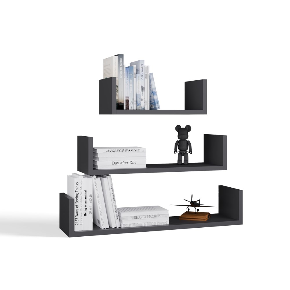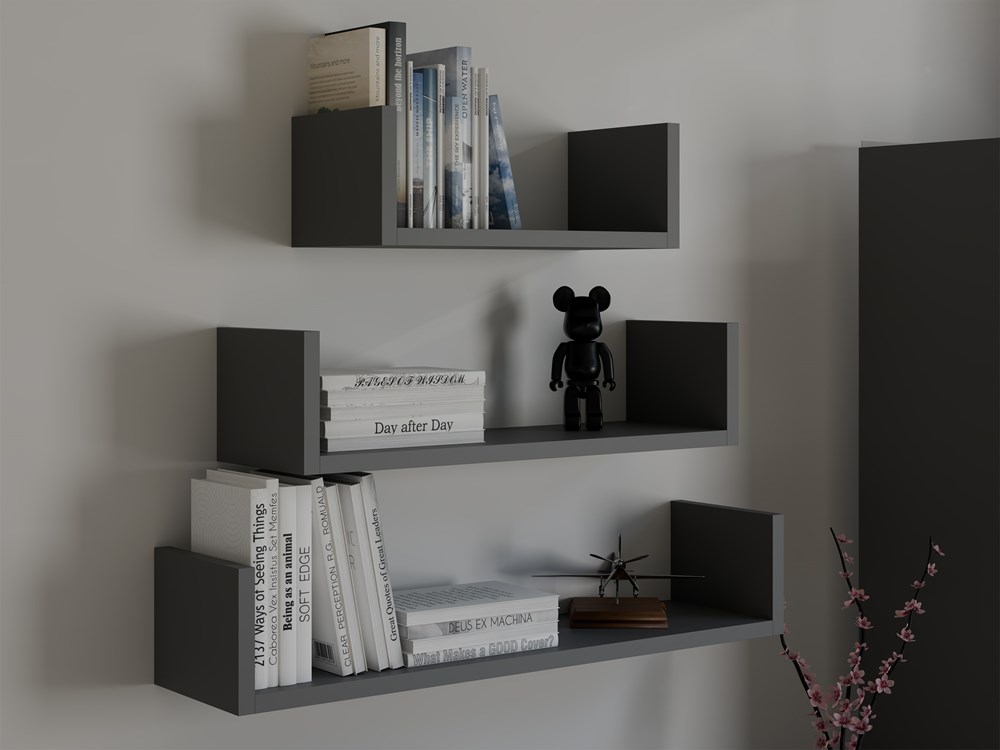 Zestaw 3 półek Apolia antracyt – półki ścienne do nowoczesnych wnętrz