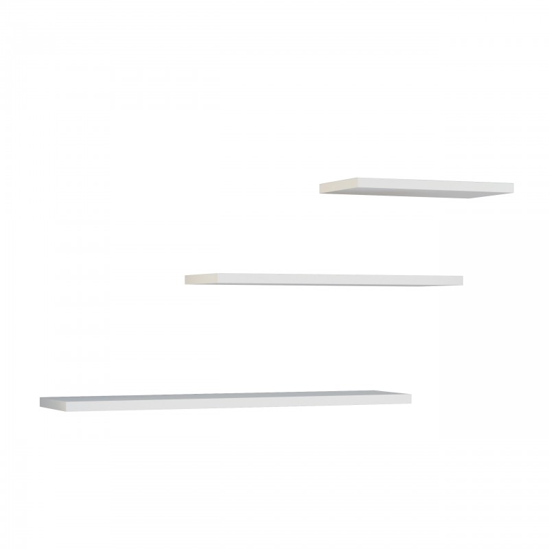 Półki wiszące zostały wykonane z płyty meblowej laminowanej w kolorze białym. Wymiary szerokości półek to 60/45/30 cm.