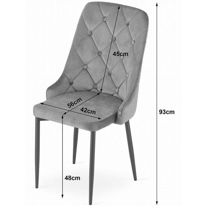 Krzesła Capri to nowoczesne krzesła, które idealnie wpasują się w jadalnie, pokój dzienny bądź inne, dowolne pomieszczenie. Krzesło wniesie do pomieszczenia elegancję oraz ciekawy wygląd. Dzięki swojemu wybarwieniu, wpasuje się w większość aranżacji. Krzesła zostały pokryte tkaniną, która jest przyjemna w dotyku, natomiast wypełnienie to pianką, która zapewni komfort użytkowania. Wysokość do siedziska wynosi 48 cm. Całość została umieszczona na stabilnym i metalowym stelażu. W zestawie 4 sztuki.