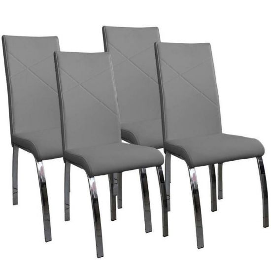 Kolekcja Komfort to zestaw 4, wygodnych krzeseł w nowoczesnym wydaniu. Krzesła świetnie sprawdzą się w eleganckich, nowoczesnych wnętrzach. Siedzisko tapicerowane jest przyjemną w dotyku ekoskórą, a jego wypełnienie stanowi pianka. Stabilność podczas siedzenia zapewniają metalowe nóżki. Oparcie krzesła jest lekko profilowane, dzięki czemu zapewnia komfort i wygodę podczas siedzenia.
