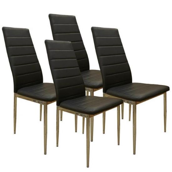 Kolekcja Kris to zestaw 4, wygodnych krzeseł w nowoczesnym wydaniu. Krzesła świetnie sprawdzą się w eleganckich, nowoczesnych wnętrzach. Siedzisko tapicerowane jest przyjemną w dotyku ekoskórą, a jego wypełnienie stanowi pianka. Stabilność podczas siedzenia zapewniają metalowe nóżki. Oparcie krzesła jest lekko profilowane, dzięki czemu zapewnia komfort i wygodę podczas siedzenia.