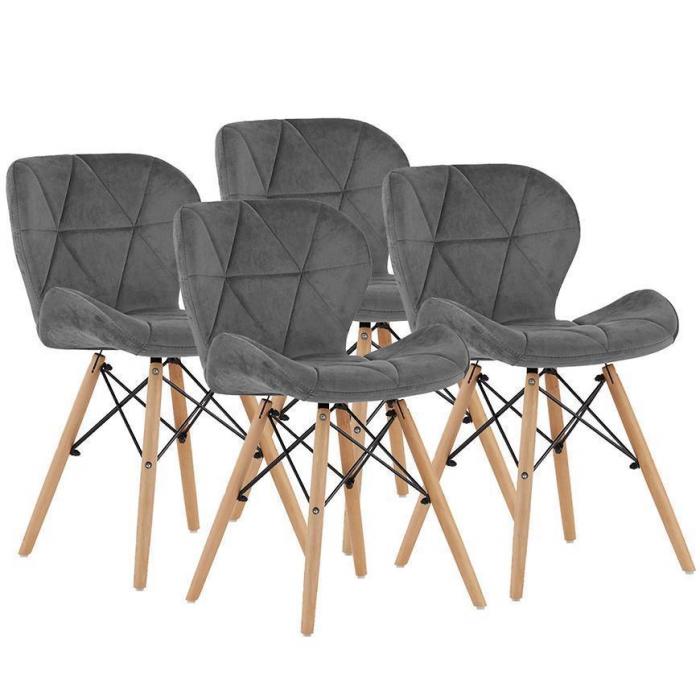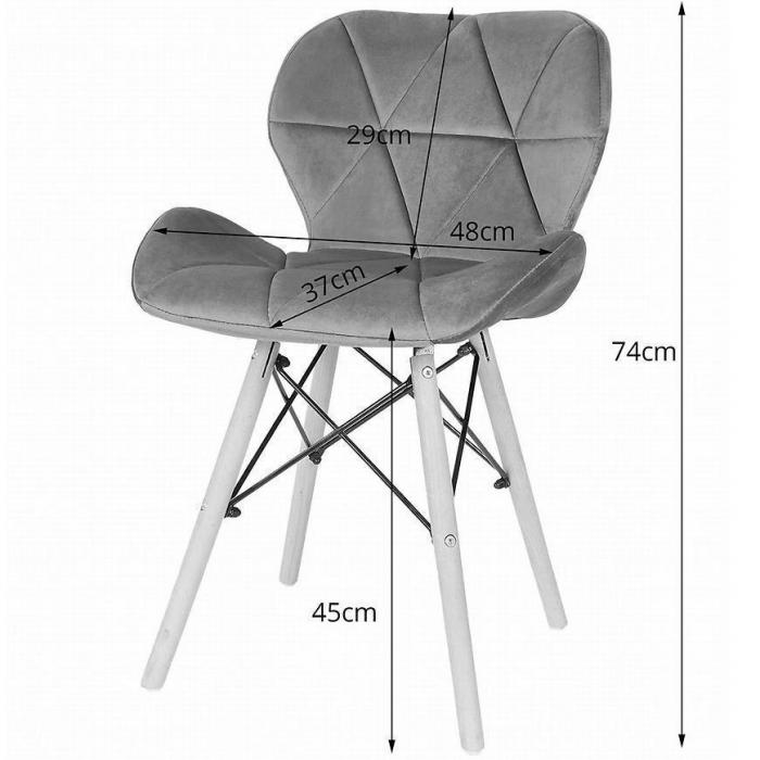Krzesła Lago to nowoczesne krzesła, które idealnie wpasują się w jadalnie, pokój dzienny bądź inne, dowolne pomieszczenie. Krzesło wniesie do pomieszczenia elegancję oraz ciekawy wygląd. Dzięki swojemu wybarwieniu, wpasuje się w większość aranżacji. Krzesła zostały pokryte tkaniną, która jest przyjemna w dotyku, natomiast wypełnienie to pianką, która zapewni komfort użytkowania. Wysokość do siedziska wynosi 45 cm. Całość została umieszczona na stabilnym i drewnianym stelażu. W zestawie 4 sztuki.