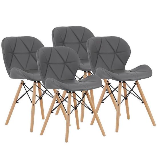 Krzesła Lago to nowoczesne krzesła, które idealnie wpasują się w jadalnie, pokój dzienny bądź inne, dowolne pomieszczenie. Krzesło wniesie do pomieszczenia elegancję oraz ciekawy wygląd. Dzięki swojemu wybarwieniu, wpasuje się w większość aranżacji. Krzesła zostały pokryte ekoskórą, która jest przyjemna w dotyku, natomiast wypełnienie to pianką, która zapewni komfort użytkowania. Wysokość do siedziska wynosi 45 cm. Całość została umieszczona na stabilnym i drewnianym stelażu. W zestawie 4 sztuki.