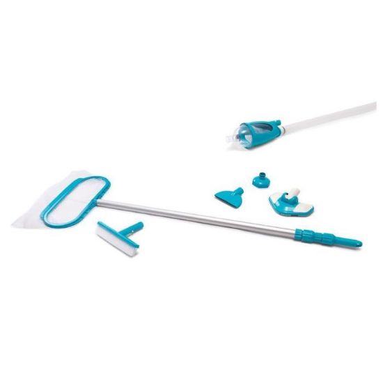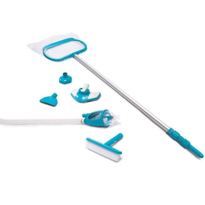 - Łatwość użytkowania – Ergonomiczne narzędzia oraz teleskopowy drążek umożliwiają wygodne czyszczenie basenu, bez potrzeby schylania się.