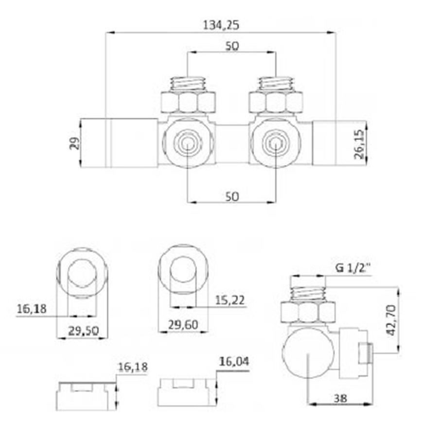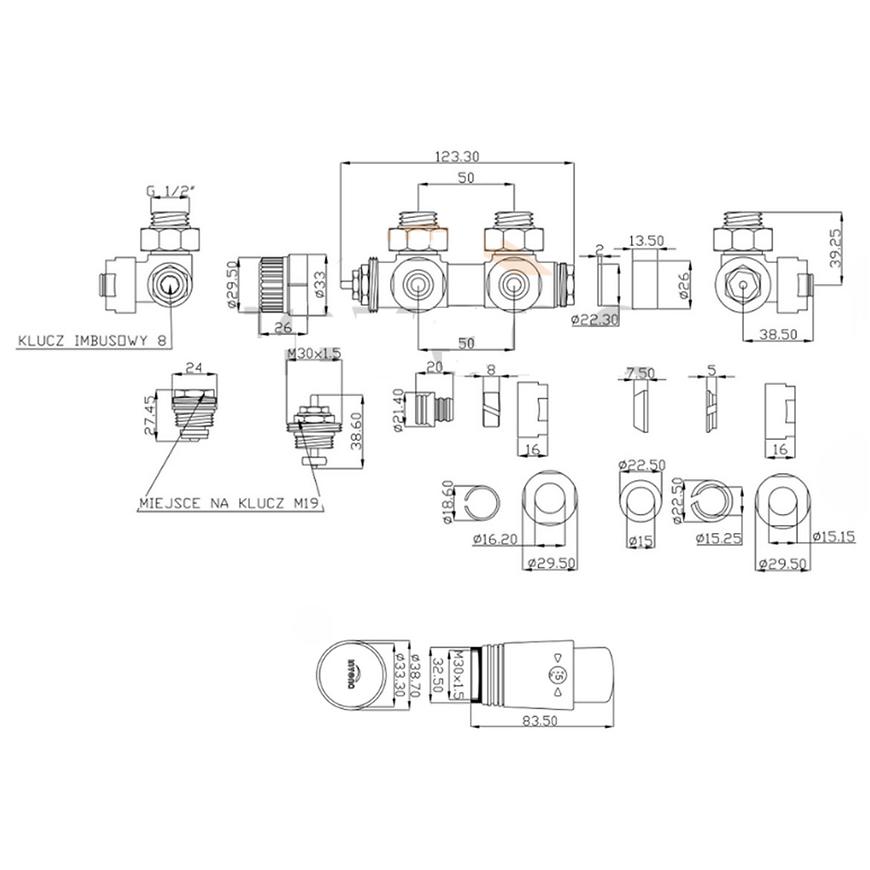 - Przyłącza do Grzejnika (½) dla Instalacji z Miedzi 15 mm i PEX 16 mm: Zestaw ten obejmuje przyłącza, które umożliwiają łatwe i efektywne podłączenie grzejnika do instalacji z rurami miedzianymi o średnicy 15 mm lub rurami PEX o średnicy 16 mm. To praktyczne rozwiązanie, które zwiększa wszechstronność zestawu, umożliwiając dostosowanie go do różnych systemów grzewczych.