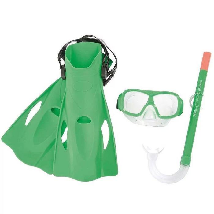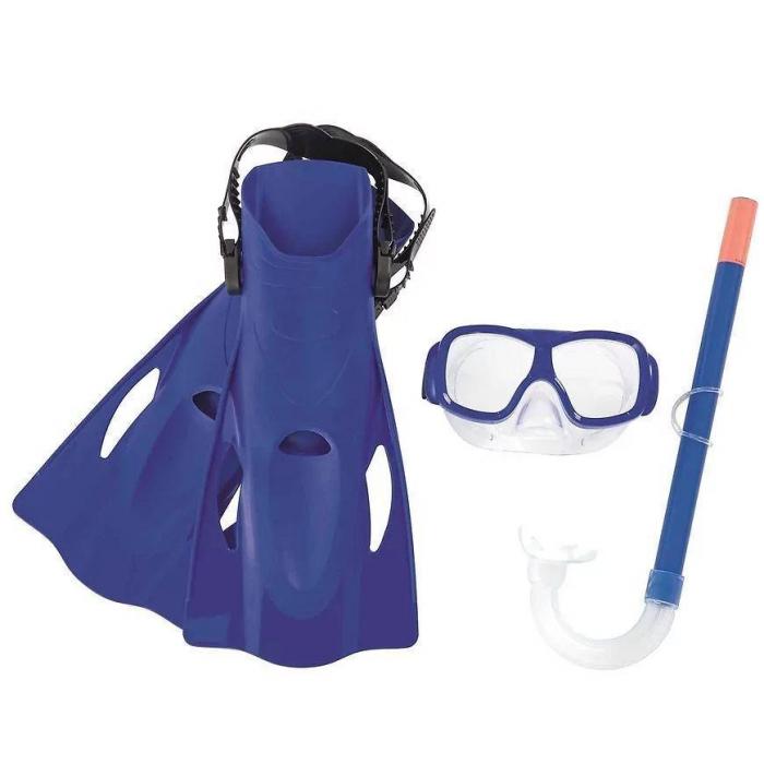 Zestaw do nurkowania z płetwami (rozmiar płetw 37-41) to podwójne okulary z ochroną przeciw UV, kołnierz gogli z podwójnym uszczelnieniem oraz rurka zamknięta, końcówka zaznaczona czerwonym kolorem. Dodatkowo produkt posiada elastyczne paski przy gogle dopasowujące się i miękki i komfortowy ustnik rurki oraz pokrowiec w zestawie.