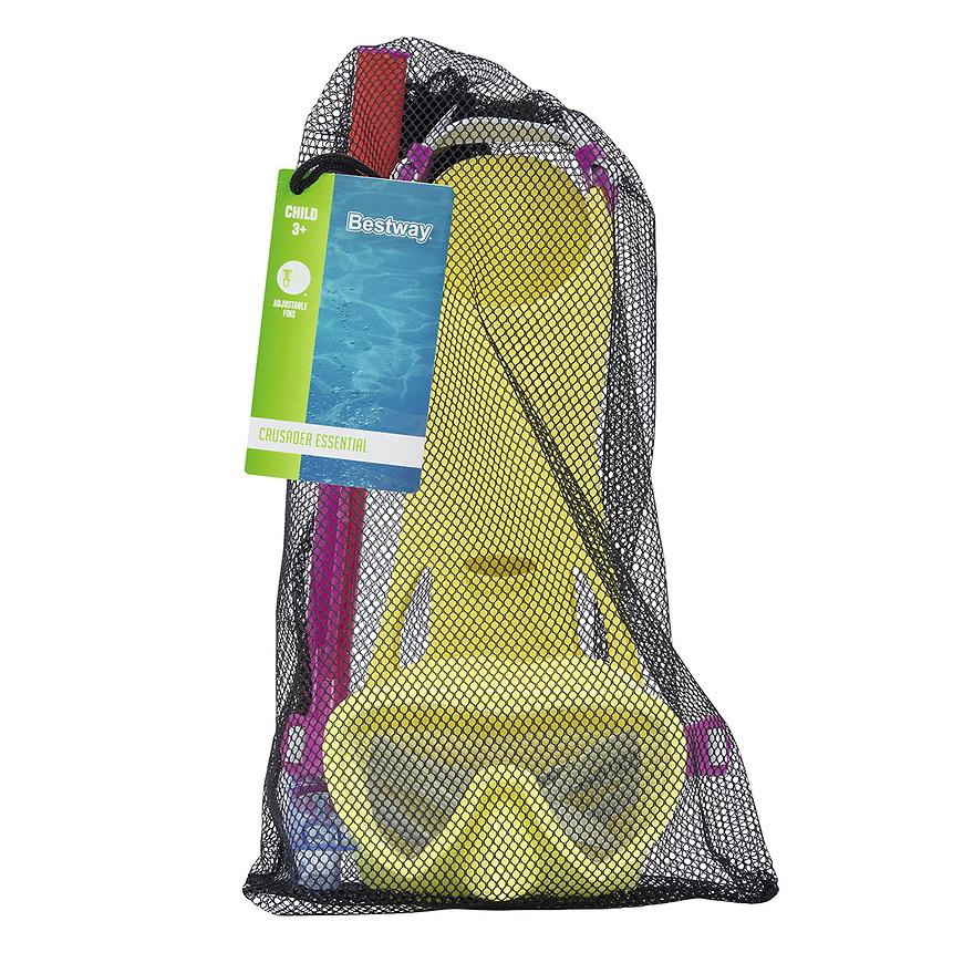 Zanurz się w fascynujący świat podwodny z zestawem do snorkelingu Bestway® Crusader Essential™, stworzonym specjalnie dla dzieci w wieku od 3 lat i starszych! Ten kompletny zestaw zawiera maskę z odpornymi na uderzenia soczewkami z ochroną UV, fajkę oraz wentylowane płetwy, zapewniając niezapomniane doznania podczas każdej wodnej przygody.