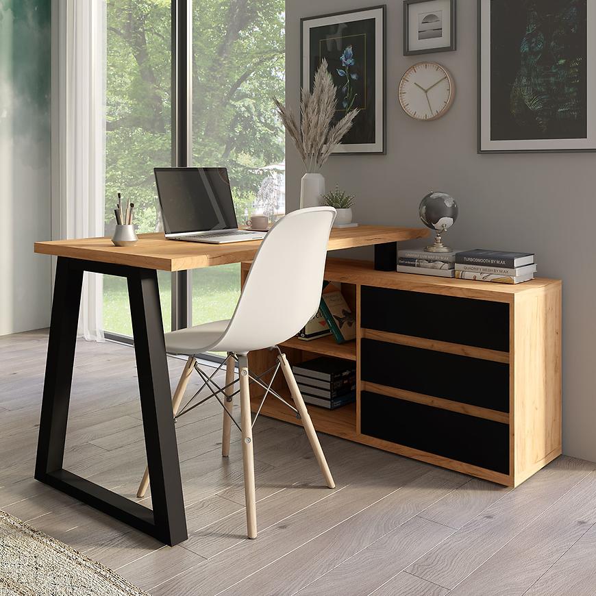 Zestaw Iga II w kolorze dąb craft/czarny to idealne rozwiązanie dla osób poszukujących funkcjonalnego biurka o nowoczesnym designie. Ten zestaw łączy w sobie eleganckie wykończenie i praktyczność.