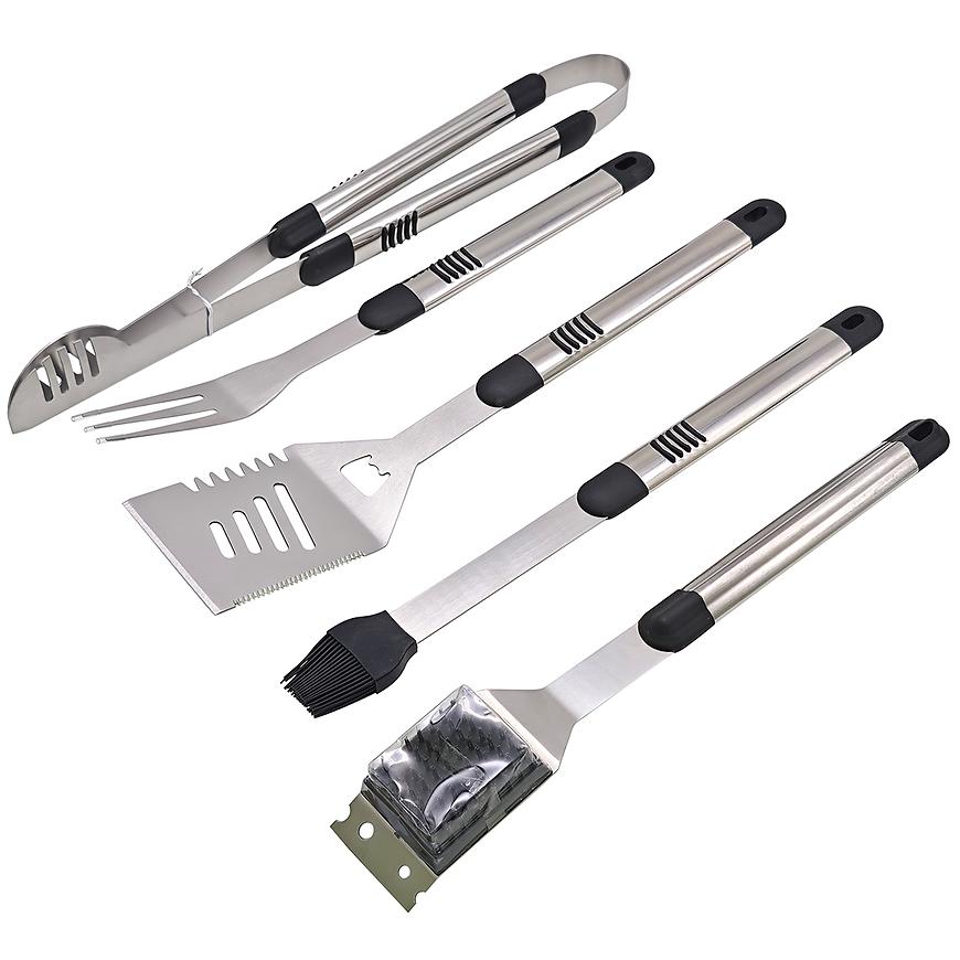 Postaw na Zestaw Narzędzi do Grillowania 5 szt., by cieszyć się wygodnym i profesjonalnym przygotowaniem potraw na grillu!