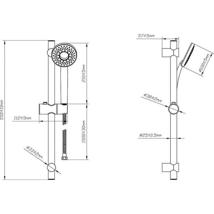 Drążek natryskowy wykonano ze stali o średnicy 25 mm, co zapewnia trwałość i stabilność podczas użytkowania. Wąż natryskowy z metalu jest elastyczny i odporny na uszkodzenia, a rączka natryskowa z tworzywa sztucznego jest lekka i wygodna w obsłudze.