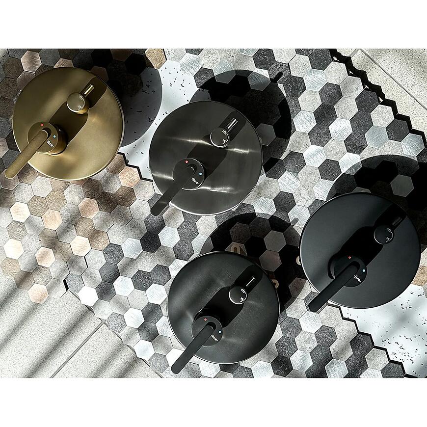 Wykończenie w kolorze tytanowym charakteryzuje się matowym, nowoczesnym wyglądem, który doskonale komponuje się z nowoczesnymi i loftowymi aranżacjami łazienek. Powierzchnia szczotkowana zmniejsza widoczność drobnych zarysowań i odcisków palców, dzięki czemu armatura dłużej wygląda jak nowa.
