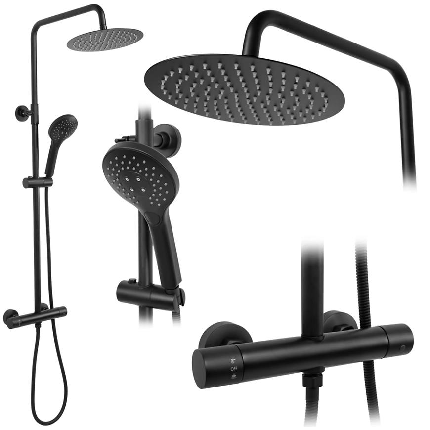 Zestaw natryskowy termostatyczny Vincent to doskonała propozycja, która zachwyci Cię swoim nowoczesnym designem i doskonałą funkcjonalnością. Wykonany z najwyższej jakości materiałów - ABS oraz mosiądzu, ten produkt to połączenie estetyki i trwałości. Dzięki systemowi montażu naściennego, idealnie wpasuje się w Twoją łazienkę, nadając jej wyjątkowy charakter. Kolor zestawu, głęboka czerń, nadaje mu elegancji i nowoczesności, idealnie komponując się z różnymi stylami łazienek.