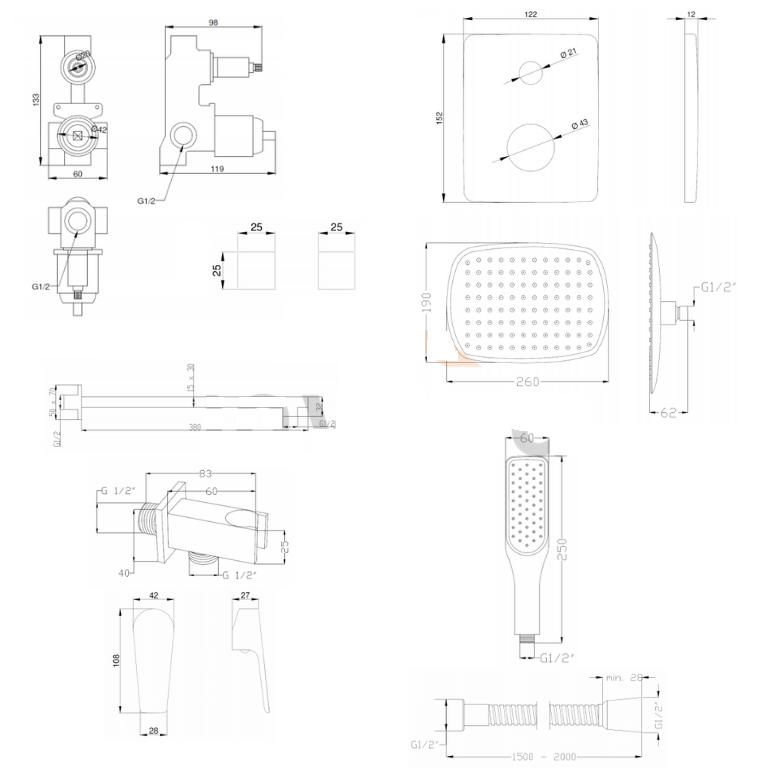 - bateria natryskowa, podtynkowa 2-funkcyjna;
