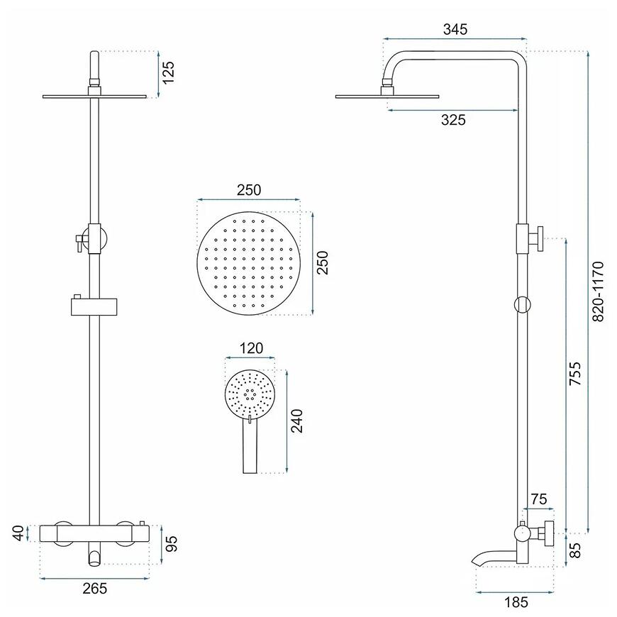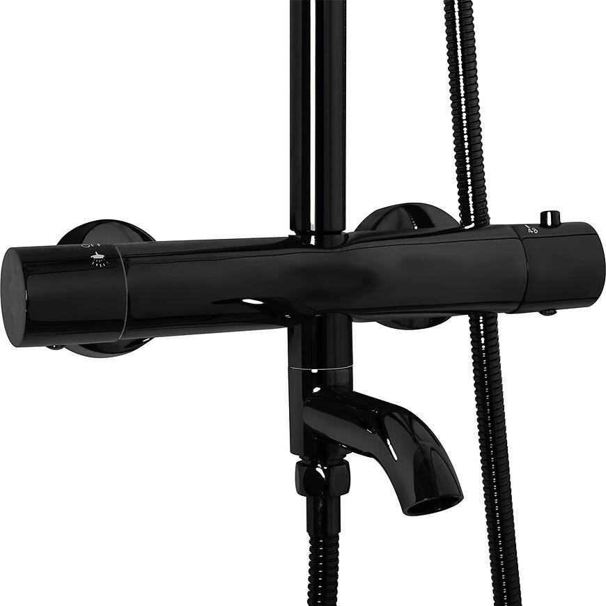 Deszczownica o wielkości 25 cm zapewnia szeroki, komfortowy strumień wody, a 3-funkcyjna słuchawka natryskowa umożliwia wybór ulubionego rodzaju natrysku. Zestaw posiada baterię termostatyczną, która gwarantuje stabilną temperaturę wody, ochronę przed nagłymi zmianami i wysoki komfort w codziennym użytkowaniu.