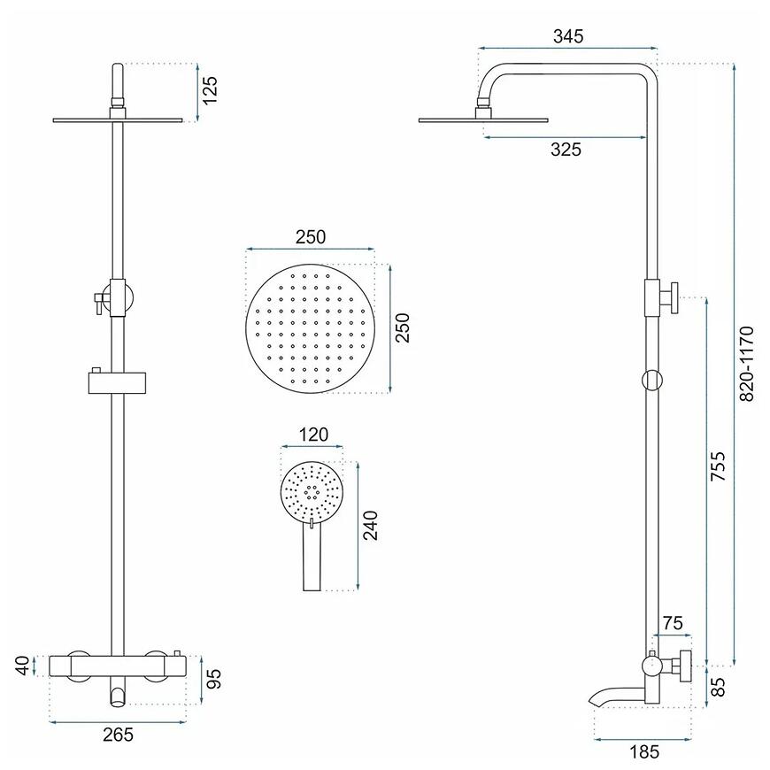 Zestaw Rea Lungo posiada 3-funkcyjną rączkę natryskową, obrotową wylewkę oraz ceramiczną głowicę, umożliwiającą dostosowanie strumienia wody do indywidualnych potrzeb. Drążek o regulowanej długości 82-117 cm i wąż natryskowy 150 cm zapewniają pełną swobodę ruchu podczas kąpieli. Deszczownica o średnicy 25 cm gwarantuje równomierny i przyjemny strumień wody, a bateria termostatyczna utrzymuje stałą temperaturę wody dla większego komfortu.