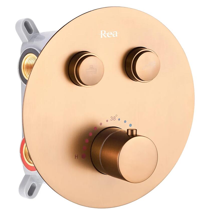 Zestaw prysznicowy podtynkowy Rea Lungo miedź szczotkowany + BOX łączy eleganckie wykończenie z praktycznymi funkcjami, zapewniając wygodę i nowoczesny wygląd łazienki. Solidne wykonanie z mosiądzu gwarantuje trwałość i odporność na codzienne użytkowanie.