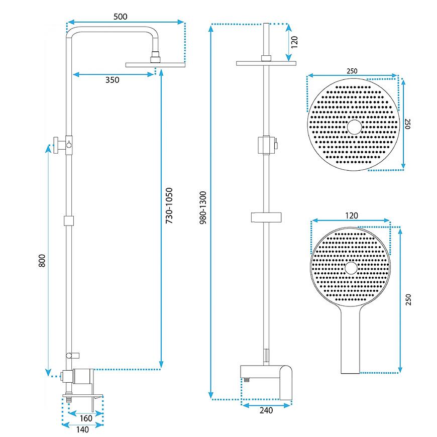 Zestaw Rea Avalon posiada 3-funkcyjną rączkę natryskową, obrotową wylewkę oraz ceramiczną głowicę, umożliwiającą dopasowanie strumienia wody do indywidualnych potrzeb. Drążek o regulowanej długości 98-130 cm i wąż natryskowy 150 cm zapewniają pełną swobodę ruchu podczas kąpieli. Deszczownica o średnicy 25 cm gwarantuje równomierny i przyjemny strumień wody.