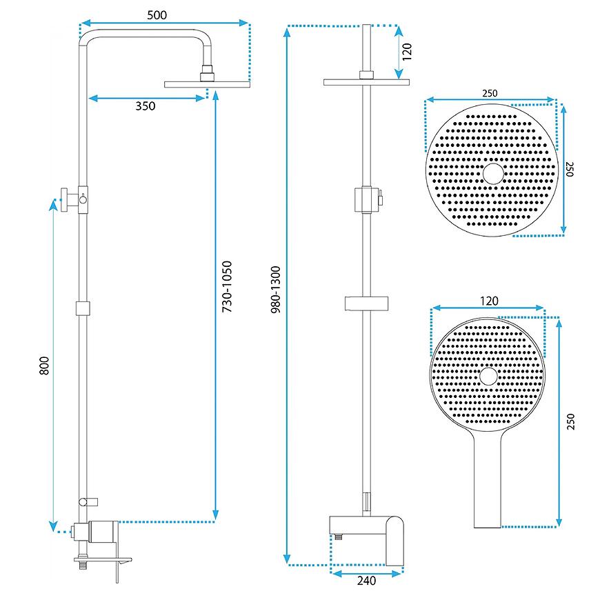 Zestaw Rea Avalon posiada 3-funkcyjną rączkę natryskową, obrotową wylewkę oraz ceramiczną głowicę, co umożliwia dostosowanie strumienia wody do indywidualnych potrzeb. Drążek o regulowanej długości 98-130 cm i wąż natryskowy 150 cm zapewniają pełną swobodę ruchu podczas kąpieli. Deszczownica o średnicy 25 cm gwarantuje równomierny, przyjemny strumień wody.