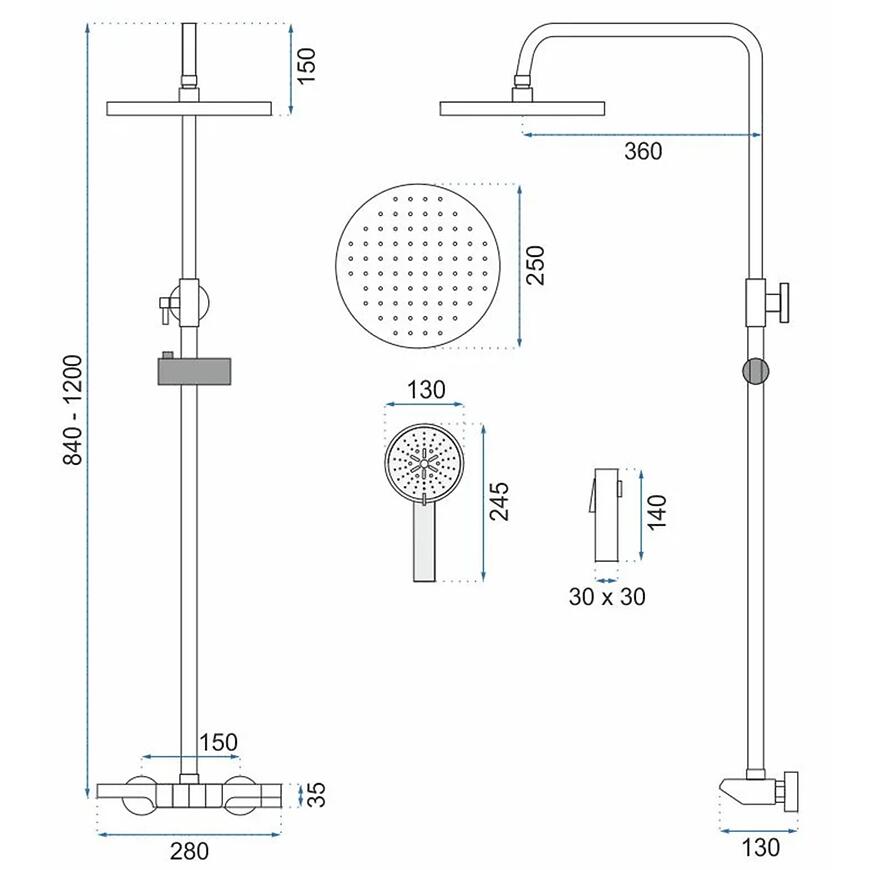 Marka REA wykorzystała w tym zestawie sprawdzony i trwały materiał ABS oraz mosiądz, co przekłada się na solidność i odporność na eksploatację. Ceramiczna głowica w baterii mechanicznej wspiera płynne sterowanie wodą, a duża deszczownica o średnicy 25 cm zapewnia przyjemne, pełne pokrycie strumieniem. Wygodnym dodatkiem jest 4-funkcyjna rączka natryskowa, dzięki której można dopasować intensywność i charakter wody do indywidualnych preferencji. Stała wylewka natryskowa wzmacnia komfort, a długość drążka regulowana w zakresie od 84 do 120 cm pozwala ustawić wysokość pod własne potrzeby.