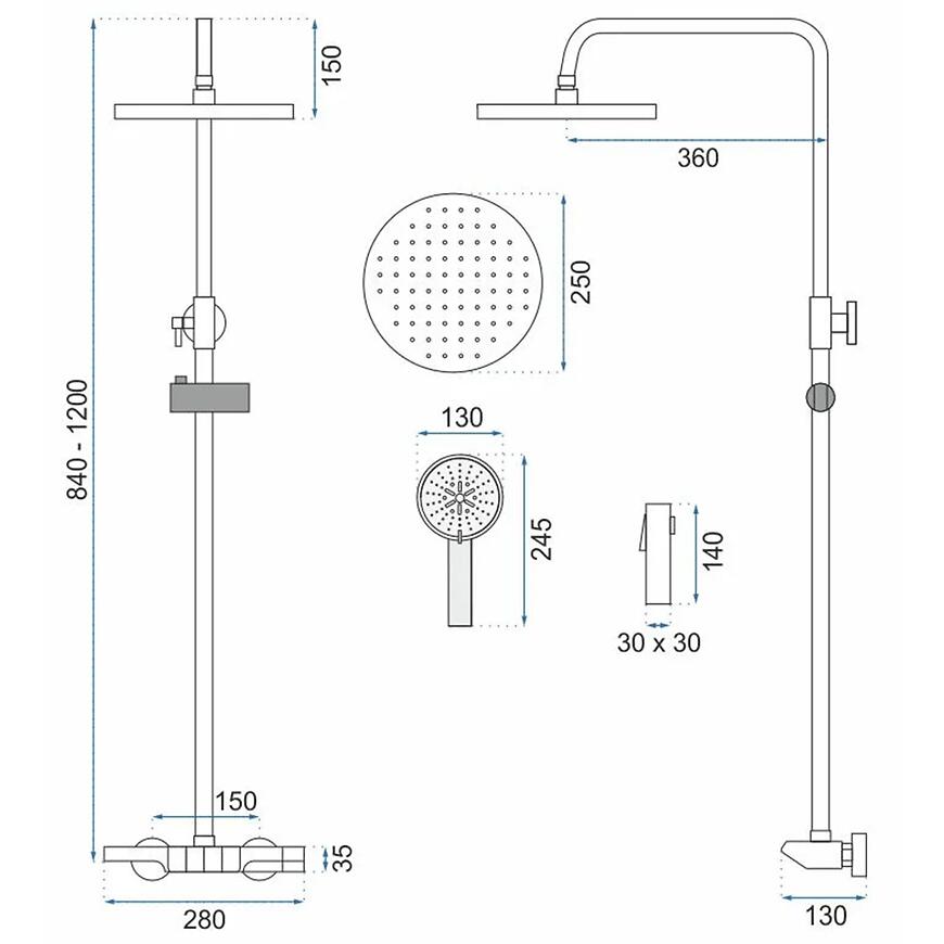 Duża deszczownica o średnicy 25 cm gwarantuje szeroki i przyjemny strumień wody, a 4-funkcyjna słuchawka natryskowa pozwala dopasować tryb natrysku do preferencji użytkownika. Zestaw opiera się na baterii mechanicznej z niezawodną, ceramiczną głowicą, co zapewnia trwałość oraz stabilną pracę.