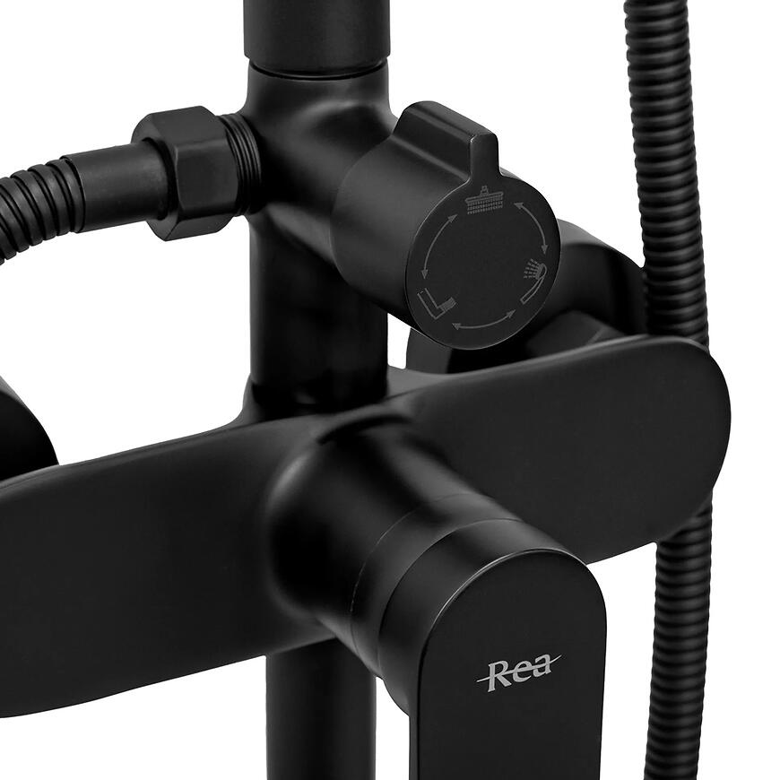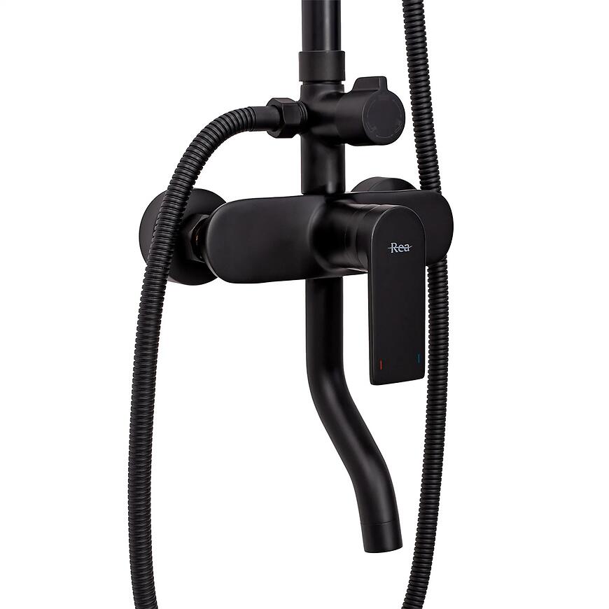 Zestaw prysznicowy Rea Verso czarny posiada deszczownicę o średnicy 22 cm, która daje szeroki i równomierny wypływ wody. Rączka natryskowa jest 3-funkcyjna, co daje możliwość dobrania formy natrysku do codziennych preferencji. Stała wylewka zapewnia stabilny wypływ i dzięki temu model Verso sprawdza się jako kompletne i przemyślane rozwiązanie prysznicowe do paneli natryskowych.