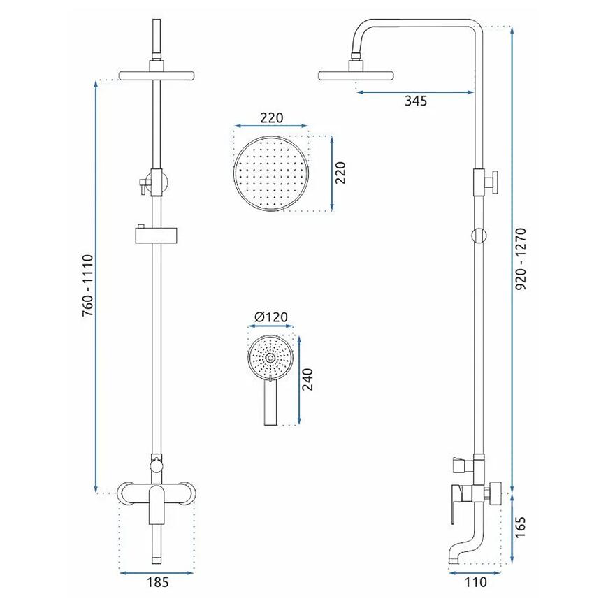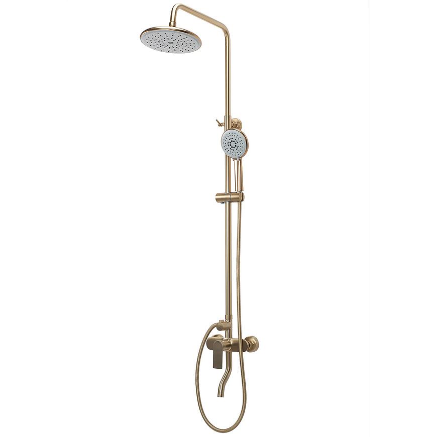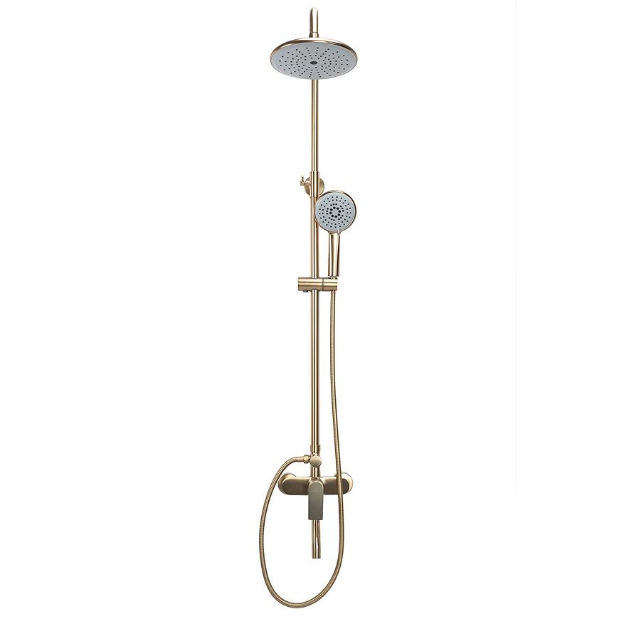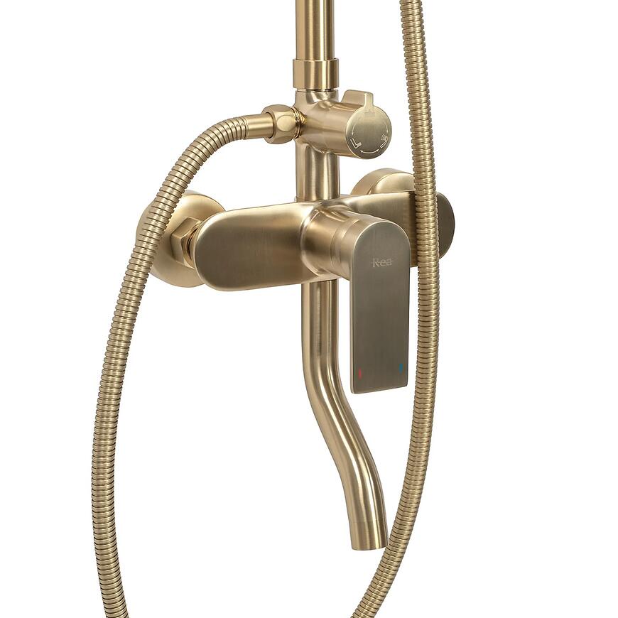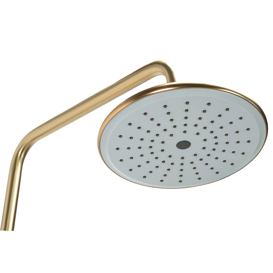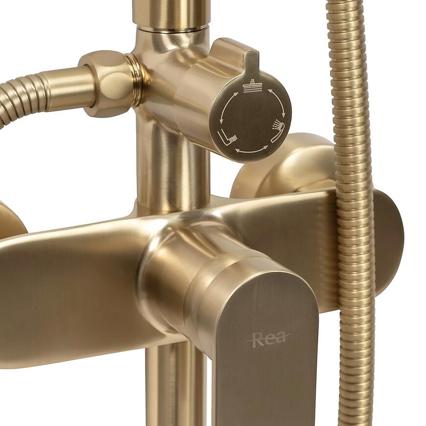 W tej wersji zastosowano deszczownicę o średnicy 22 cm, co daje odpowiednio szeroki i jednolity strumień wody. Rączka natryskowa jest 3-funkcyjna, co daje możliwość dopasowania trybu natrysku do upodobań użytkownika. Stała wylewka zapewnia stabilny wypływ i płynny sposób użytkowania systemu. Długość drążka regulowana jest w zakresie 92-127 cm, dzięki czemu zestaw prysznicowy Rea Verso złoty szczotkowany łatwo dopasować do preferowanej wysokości.