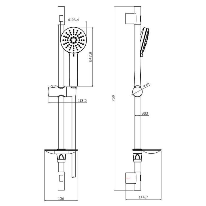 Zestaw Kona 4-F wyposażono w mydelniczkę/półkę, co pozwala utrzymać kosmetyki pod ręką i uporządkować przestrzeń prysznica. Dzięki temu kąpiel staje się bardziej komfortowa, a łazienka pozostaje estetyczna i funkcjonalna.
