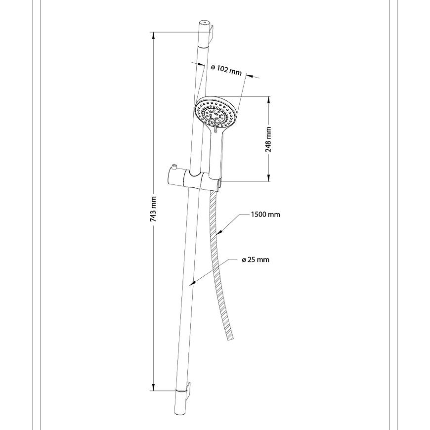 Ten zestaw prysznicowy przesuwany został zaprojektowany z myślą o trwałości i estetyce. Drążek o długości 82,5 cm wykonany jest ze stali, co zapewnia jego solidność i odporność na korozję. Dzięki rozstawowi mocowań 74,3 cm, montaż na ścianie jest prosty i dopasowany do większości standardowych rozwiązań.