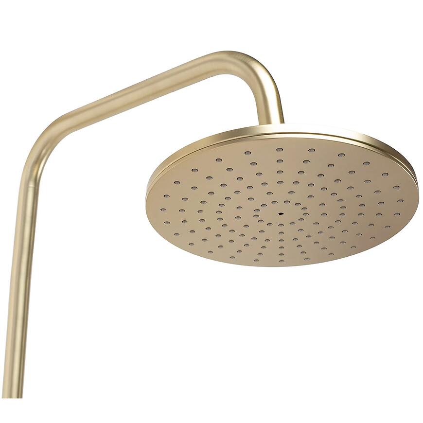Deszczownica o średnicy 22 cm zapewnia równomierny i komfortowy strumień wody, który uprzyjemnia codzienny prysznic. Złote szczotkowane wykończenie dodaje łazience elegancji i nowoczesnego charakteru, a jednocześnie jest łatwe w utrzymaniu czystości.