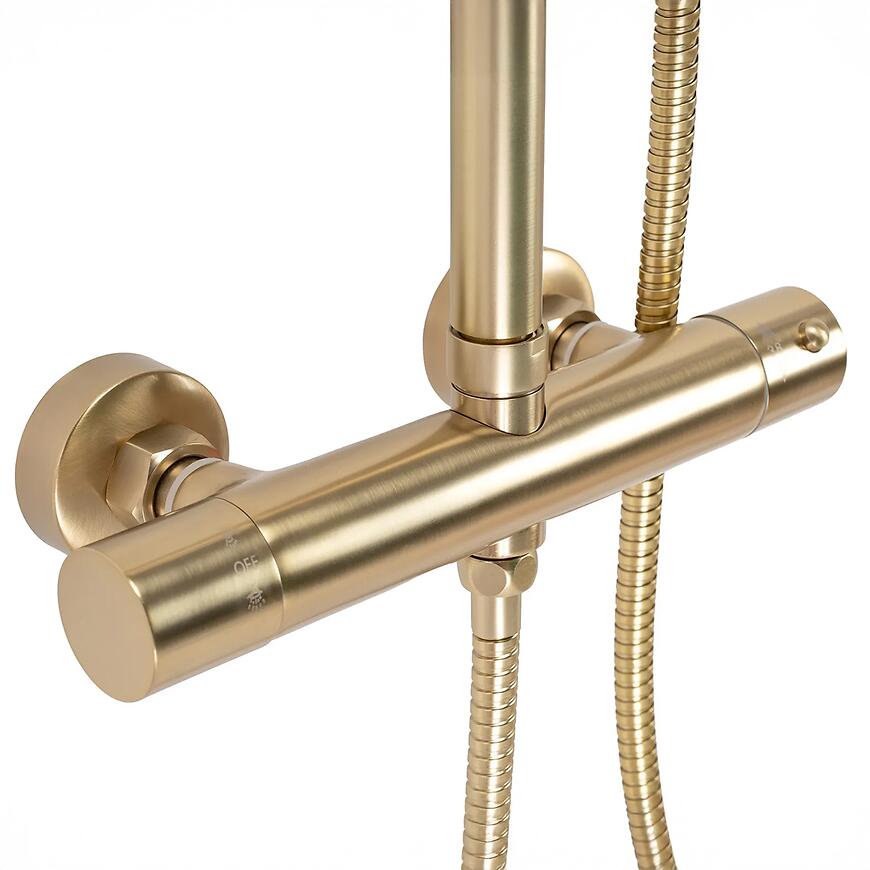 Zestaw prysznicowy złoty szczotkowany z deszczownicą 22 cm – relaksujący i stylowy natrysk