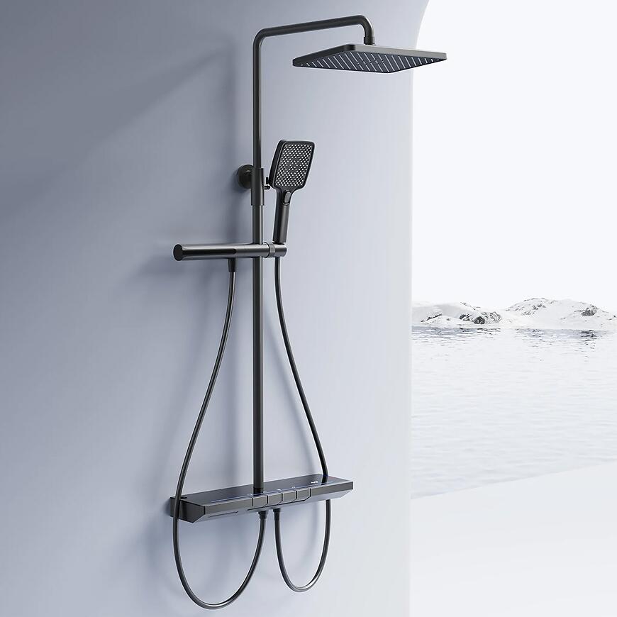 Linia Pedro to zestawy prysznicowe o wyraźnym charakterze, wyrazistej formie i dużych powierzchniach natryskowych. W wersji tytanowej z termostatem całość nabiera jeszcze bardziej profesjonalnego charakteru i przeznaczona jest dla tych, którzy w kabinie prysznicowej oczekują wygody bez kompromisów.