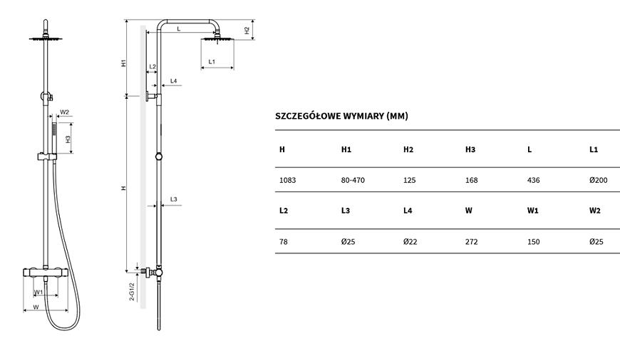 Głównym materiałem wykonania drążka zestawu jest trwały mosiądz, co zapewnia nie tylko solidność, ale także elegancki wygląd. Głowica termostatyczna, będąca integralną częścią zestawu, to innowacyjne rozwiązanie, które sprawia, że korzystanie z prysznica staje się nie tylko komfortowe, ale także bezpieczne. Dzięki temu nawet najmłodsi użytkownicy oraz osoby wymagające szczególnej troski mogą korzystać z prysznica w pełni bez obaw.