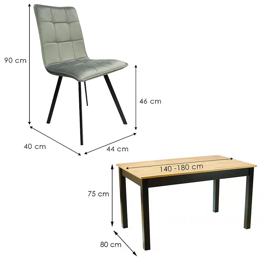 Stół o wymiarach 140 cm długości przed rozłożeniem można w prosty sposób powiększyć do 180 cm, co pozwala komfortowo ugościć większą liczbę osób. Prostokątny blat o szerokości 80 cm i wysokości 75 cm zapewnia wygodną przestrzeń do codziennych posiłków. Matowe wykończenie blatu nie tylko prezentuje się elegancko, ale również ułatwia utrzymanie powierzchni w czystości.