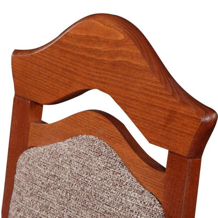 W zestawie znajduje się sześć krzeseł o klasycznym designie, których wymiary to 47 cm szerokości i 43 cm głębokości, z wysokością całkowitą 98 cm i siedziskiem na 46 cm. Tapicerowane miękką pianką i pokryte trwałą tkaniną, zapewniają wygodę podczas wielogodzinnych posiłków. Krzesła w ciemnym drewnopodobnym wybarwieniu doskonale komponują się z blatem stołu w kolorze jasnego orzecha, tworząc harmonijny i spójny zestaw.