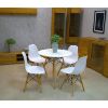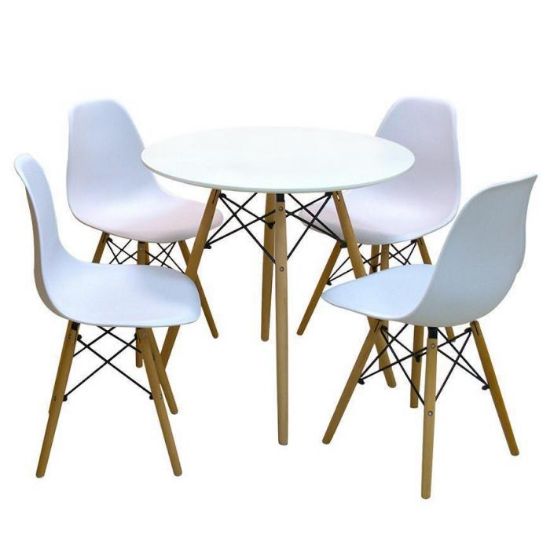 Zestaw stół i krzesła Ariel to świetny zestaw, który wpasuje się w większość aranżacji. Został wykonany z płyty wiórowej laminowanej. Konstrukcja zestawu jest solidna oraz wytrzymała. Krzesła są bardzo wygodne. Wysokość całkowita krzeseł to 82cm, natomiast wysokość do siedziska to 46cm. W zestawie znajdują się 4 krzesła.