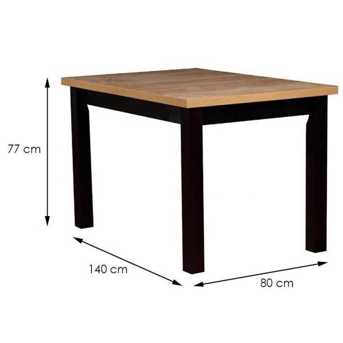 Zestaw stół i krzesła Artemida 1+6 ST45+W114 dąb wotan/czarny to świetny zestaw, który wpasuje się w większość aranżacji. Został wykonany z drewna oraz płyty laminowanej. Konstrukcja zestawu jest solidna oraz wytrzymała. Krzesła są bardzo wygodne, siedzisko zostało wypełnione pianką. Wysokość całkowita krzeseł to 95cm, natomiast wysokość do siedziska to 46cm. W zestawie znajduje się 6 krzeseł.