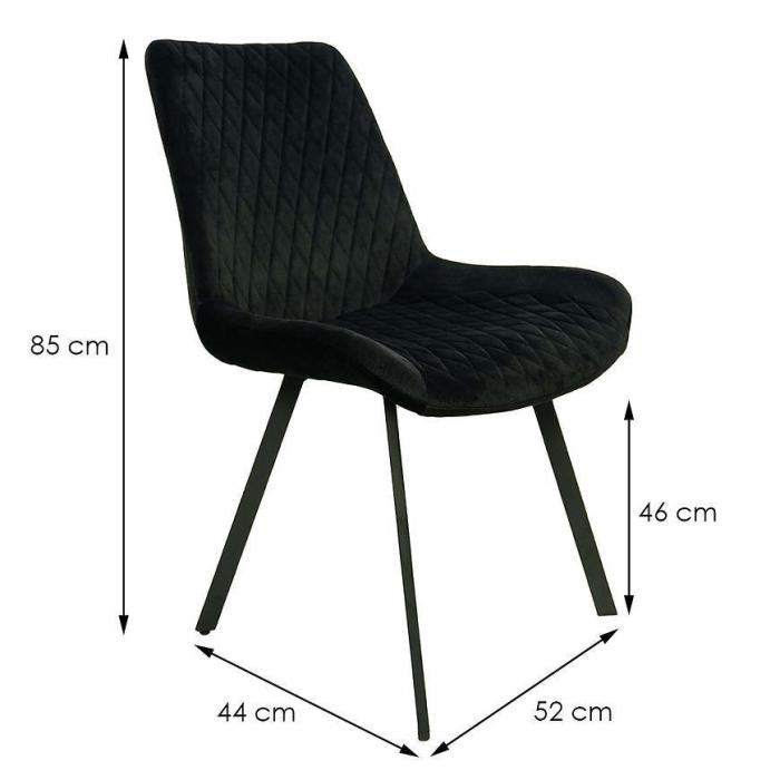 W zestawie znajdują się 4 krzesła. Wysokość całkowita wynosi 85 cm, a wysokość do siedziska 46 cm.