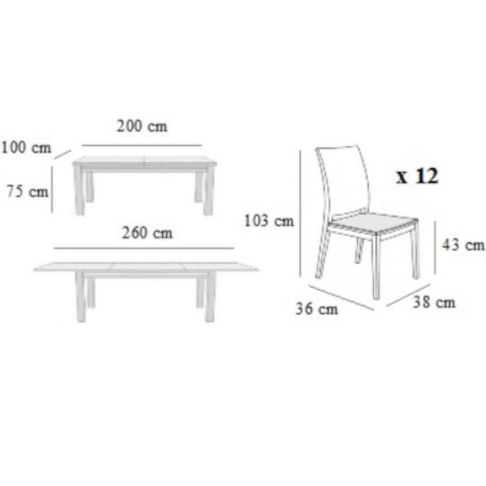 - w skład zestawu wchodzą stół + dwanaście krzeseł