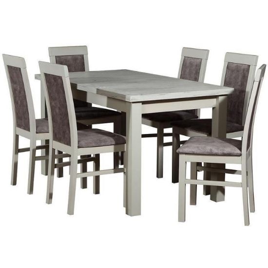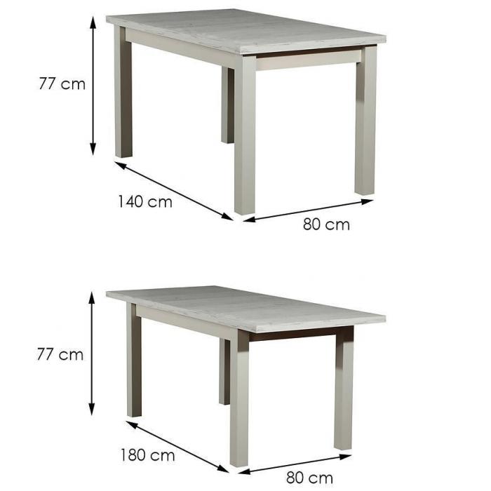 Zestaw stół i krzesła Hades 1+6 ST28+W118 dąb craft biały to świetny zestaw, który wpasuje się w większość aranżacji. Został wykonany z drewna oraz płyty laminowanej. Konstrukcja zestawu jest solidna oraz wytrzymała. Stół jest rozkładany, przed rozłożeniem jego dlugość wynosi 140cm, natomiast po rozłożeniu - 180cm. Krzesła są bardzo wygodne, siedzisko zostało wypełnione pianką. Wysokość całkowita krzeseł to 95cm, natomiast wysokość do siedziska to 46cm. W zestawie znajduje się 6 krzeseł.