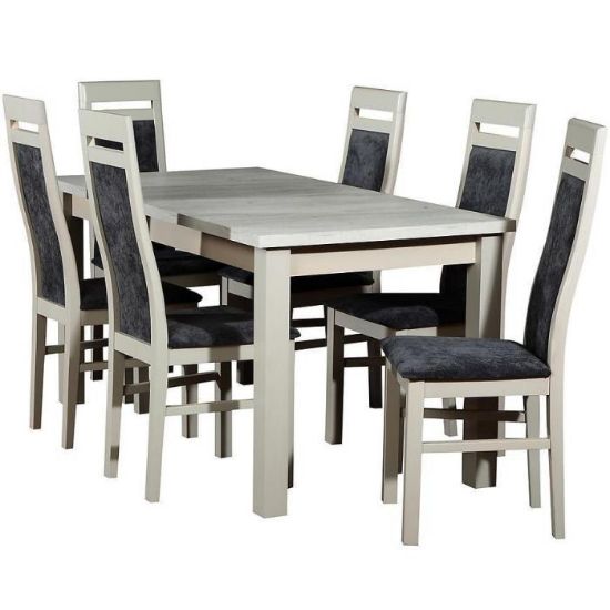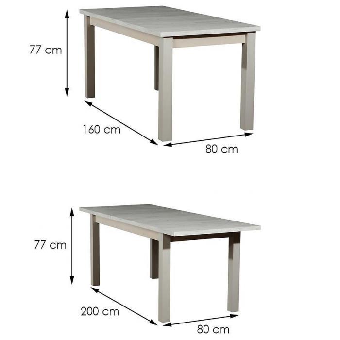 Zestaw stół i krzesła Herkules 1+6 ST28+W8 dąb craft biały to elegancki stół z ładnym wykończeniem o wysokości 77 cm, szerokości 80 cm i długości 200 ( po rozłożeniu). Nośność (kg):100. Doskonale sprawdzi sie w jadalni, pokoju dziennym, a także w kuchni.