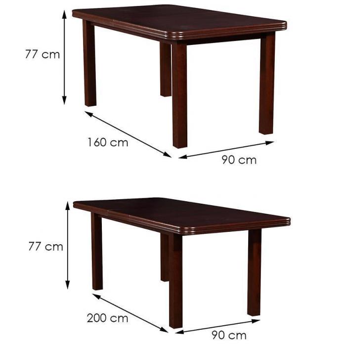 Stół Kastor charakteryzuje się prostokątnym blatem o szerokości 90 cm i wysokości 77 cm. Blat matowy nadaje stołowi subtelny, klasyczny wygląd, jednocześnie ułatwiając utrzymanie czystości. Dzięki mechanizmowi rozkładania, stół może mieć długość 160 cm w standardowej konfiguracji, a po rozłożeniu aż 200 cm, co pozwala wygodnie pomieścić większą liczbę gości. Wysoka stabilność i solidna konstrukcja sprawiają, że stół jest trwały i wygodny w codziennym użytkowaniu.