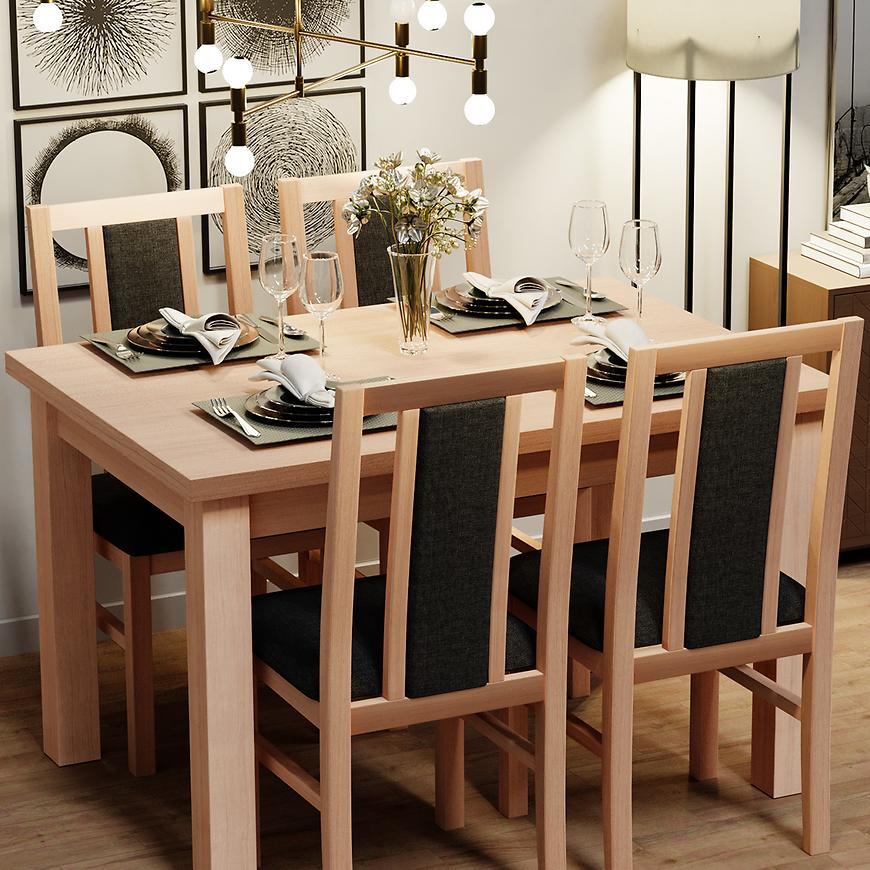 Zestaw KPL 1+4 BOSS 14 to funkcjonalny i stylowy wybór dla osób szukających wygodnych mebli do jadalni, które łączą w sobie klasyczny wygląd z nowoczesnymi materiałami i praktycznymi rozwiązaniami. Dzięki wyważonym proporcjom oraz wygodnym siedziskom, gwarantuje komfort i elegancję, a jednocześnie jest solidnym rozwiązaniem na lata.