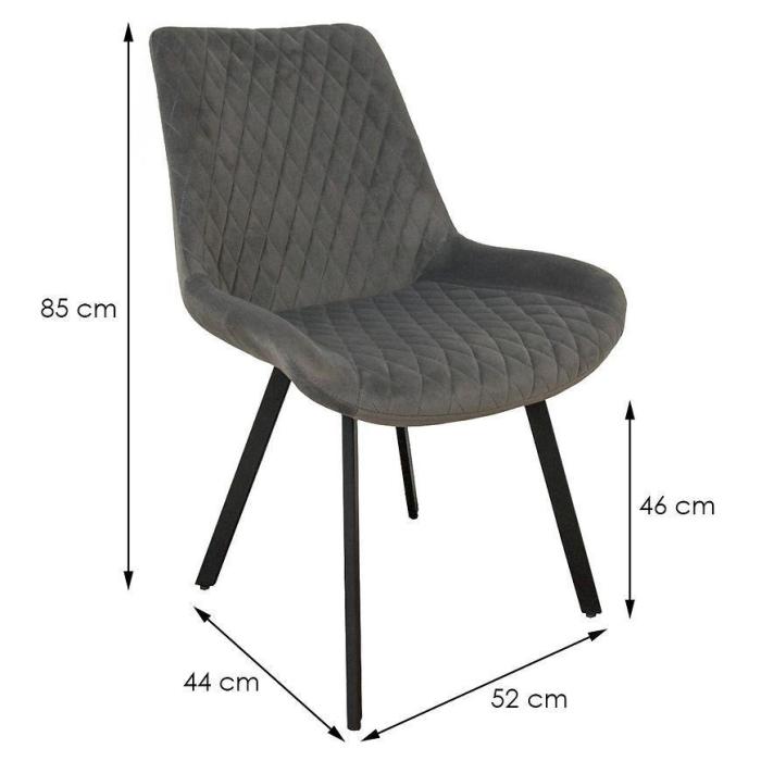 W zestawie znajdują się 6 krzeseł. Wysokość całkowita wynosi 85 cm, a wysokość do siedziska 46 cm.