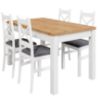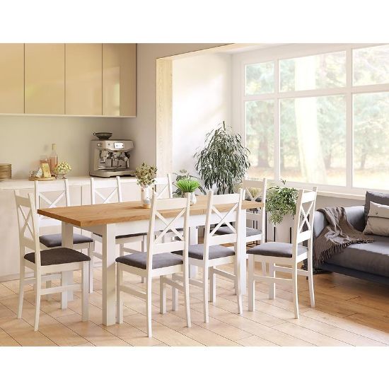 W zestawie znajdują się cztery krzesła, które idealnie komponują się ze stołem. Krzesła są ergonomiczne, wygodne w siedzeniu i solidne w konstrukcji. Zapewniają one nie tylko komfort podczas posiłków, ale także stylowe wykończenie całego zestawu.