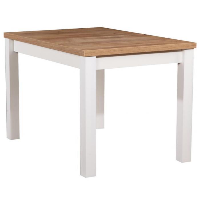 Stół ma blat prostokątny o wymiarach 120 x 80 cm i wysokość 77 cm, co zapewnia wygodę podczas codziennych posiłków, a także przy spotkaniach z rodziną czy przyjaciółmi. Blat wykonany z płyty laminowanej z matowym wykończeniem prezentuje się elegancko i jest odporny na drobne zarysowania oraz wysokie temperatury. Kolor dąb wotan w połączeniu z białymi nogami stołu wpisuje się w nowoczesne aranżacje wnętrz, dodając im świeżości i lekkości.