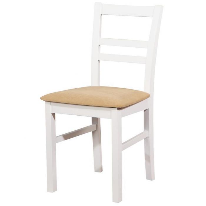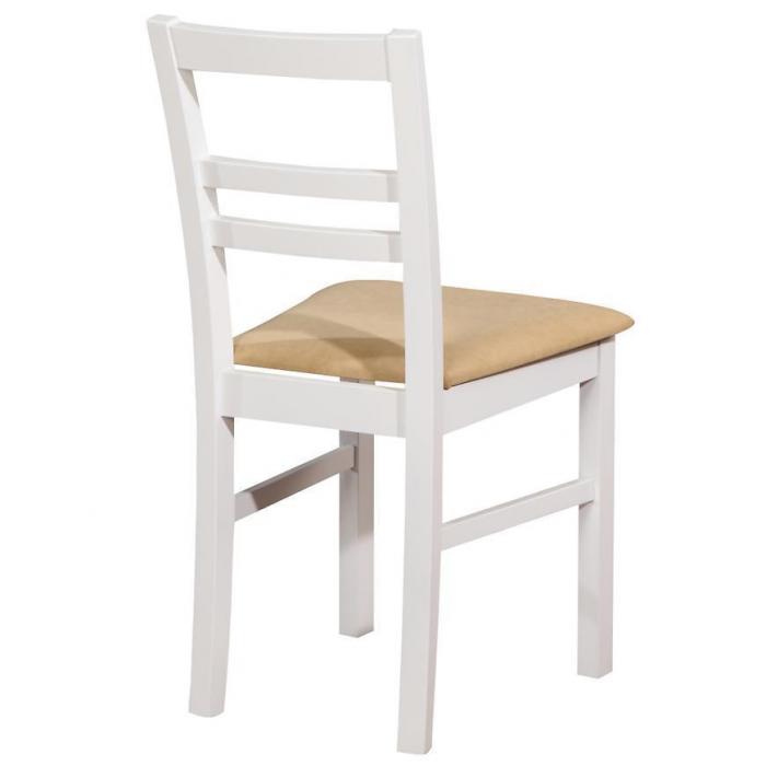 Zestaw zawiera 4 krzesła o wymiarach 44 x 39 cm (szerokość x głębokość) i wysokości całkowitej 86 cm, z wysokością siedziska 47,5 cm, co zapewnia wygodę użytkowania. Siedziska wypełnione są pianką, a tapicerka wykonana z trwałej tkaniny w kolorze białym sprawia, że krzesła są miękkie i przyjemne w dotyku. Prosta forma i nowoczesny design krzeseł pozwala na ich łatwe dopasowanie do różnych wnętrz.